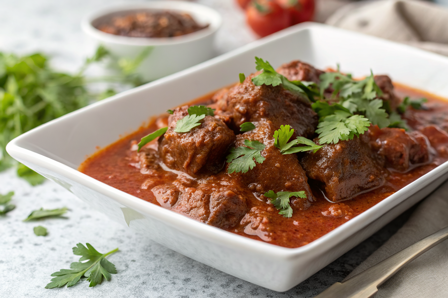 - La sauce tomate absorbe les sucs du bœuf : l’acidité naturelle des tomates aide à décomposer les fibres de collagène du jarret et enrichit la sauce d’une profondeur que l’on ne peut pas obtenir avec d’autres liquides.
